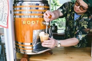 ヒトと土地のルーツに合わせてハーブを調合する変幻自在の自家製樽生ルートビアを全国各地でサーブしている。