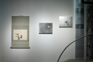 東洋の絵画様式を再考しながら、現代における新たな表現を探求し続けるアーティストです。今回は、New Balance「Grey」の世界観から着想を得て色彩を抽出し、「TIMELESS=時代を超越する」というキーワードを軸に、日本の伝統的な絵画技法を用いた3点の作品を発表します。銀箔による「椿」、墨による「椿」の新作2点、そしてそれらに関連した軸装作品「椿」の計3作品を展示します。